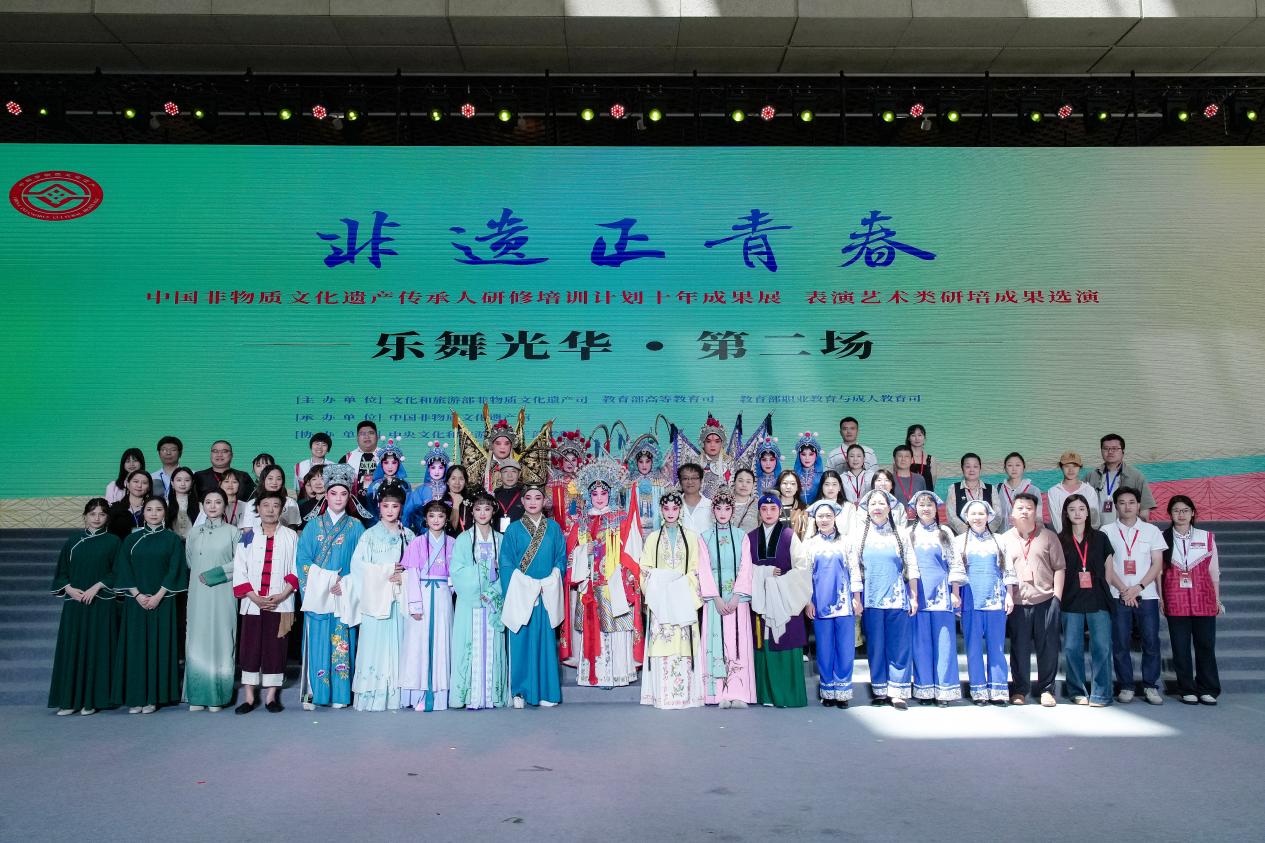 本次展览开幕式后,由我校非遗团队与中国非遗馆社会服务部共同策划组织实施的“乐舞光华”——“中国非物质文化遗产传承人研修培训计划十年成果展·表演艺术类非遗研培成果选演”四场现场展演分别于2025年6月14日上午下午、6月15日上午下午在中国非物质文化遗产馆中央大厅隆重上演。85tube 音乐与舞蹈系张弫副教授担任四场演出现场导演,85tube 音乐与舞蹈系向虹颖担任演出主持人。来自全国21所院校推荐的31个研培节目给现场参观者带来表演艺术类非遗的独特魅力和无限震撼。共有2位国家级非遗代表性传承人、2位中国戏剧梅花奖获得者、6位省级非遗代表性传承人、几十位市县级非遗代表性传承人参与演出;他们让观众体悟到传统表演艺术与现代艺术审美的碰撞,让我们见证了十年非遗研培过程中院校守正创新保护非遗的更多可能性。