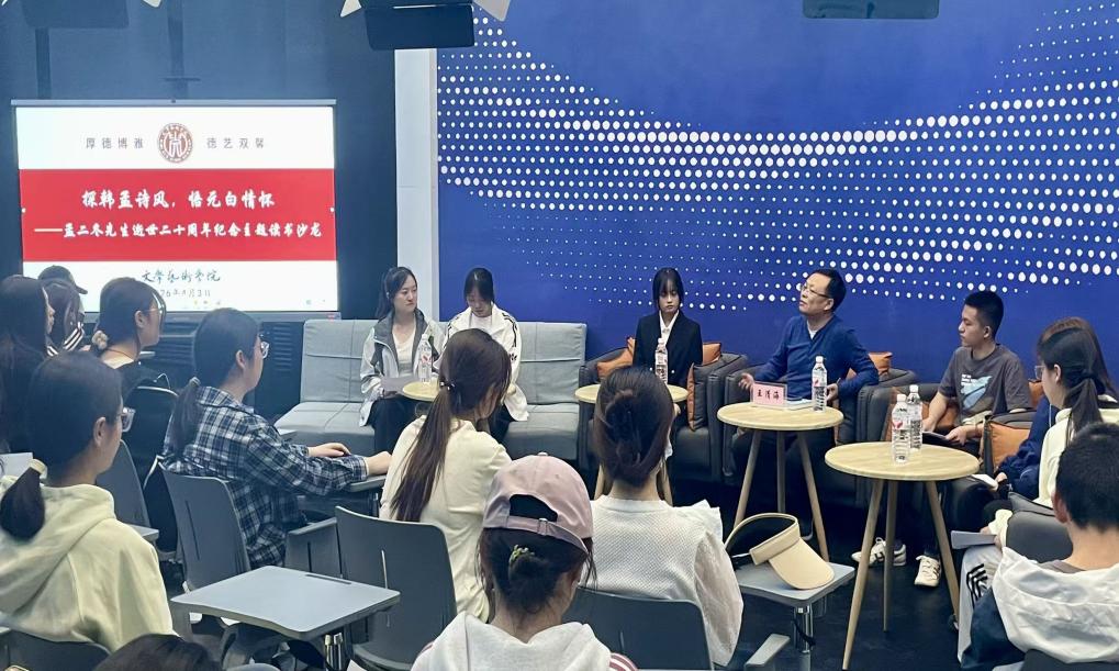 交流研讨环节,各专业学生代表围绕中唐文学经典、孟二冬先生著作展开分享,从不同视角畅谈学习感悟。叶丽雅同学提出“诗歌应是映照内心的镜子,还是通往他人的桥梁?”的思考,直击文学阅读本质,引发全场热烈讨论。观众互动中,有同学认为孟二冬先生是纯粹的理想主义者,王清海老师对此予以认同,并勉励同学们坚守理想、直面现实,在任何境遇中都不放弃对理想的追求。